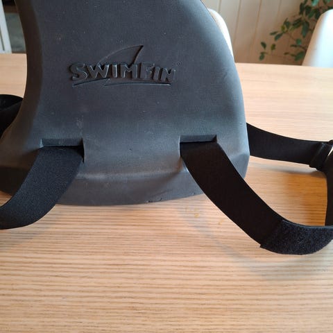Hai finne til å lære seg å svømme. Festes på ryggen med borrelås belter . Pent brukt uten skader.