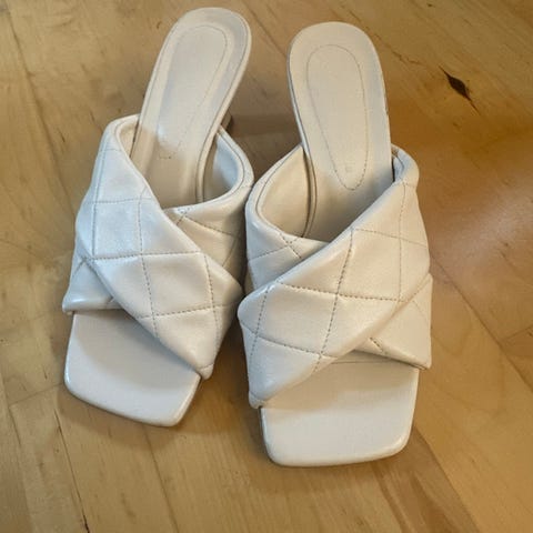 Selger disse kjempefine sommerskoene, sandal med høy hel. De er komfortable og nesten ikke brukt. Litt store for meg.