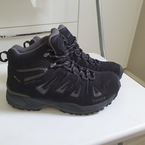 Godt brukt, men mye bruk igjen, sorte goretex sko. Størrelse 33, vanlig I størrelse. Har en liten glipp i sålen.