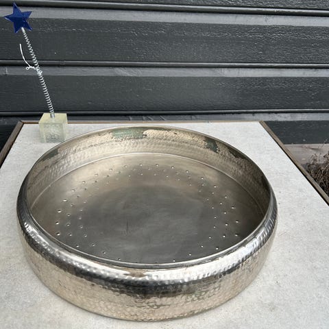 Str. 42 cm i diameteren. ca 10 cm høy.