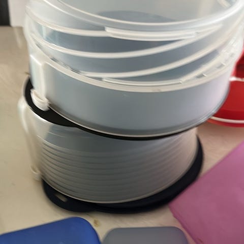 Unntatt den svarte til høyre. Pakke med diverse utstyr til Cosori airfryer. Ubrukt utstyr