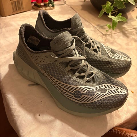 Sikre deg gode piggsko til vinterløping! Fantastisk grep og komfort. Varm og god overdel med Gore Tex. Lite brukt. En liten rift i stoffet på hælkappa høyre sko. Ingen betydning for funksjon. Str. 45 1/3.