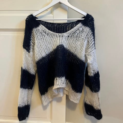Fin håndstrikket genser med garn Alpakka koksgrå melert 1088 og Alpakka Natur 1012.