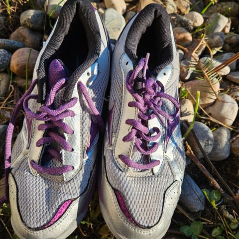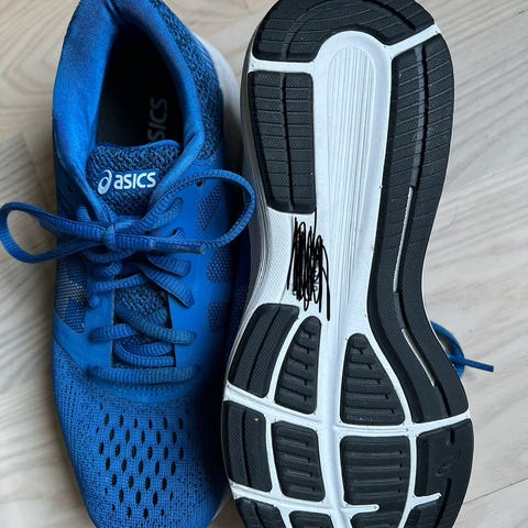 Joggesko, pent brukt men har et merke fra tusch på hælen (se bilde). Litt smale fremtil. Innersålen er ca 23,5 cm.