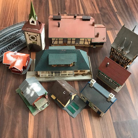 Brukte ferdigbygget hus. Bygningene kan ha mangler, bruddskader, lim og fargerester.