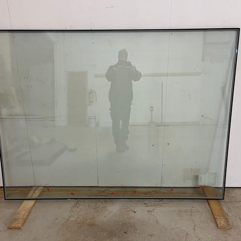 2 stykk glass foran peis selges. 700 for den mindre, 1000 for den større. Ingen riper på glasset. Det er litt gummibelegg rundt som man kan lett få av med en kniv.
