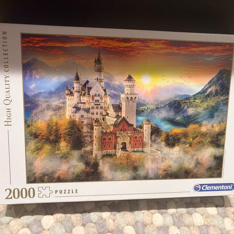Puslespill som er lagt én til tre ganger. Ingen brikker mangler.