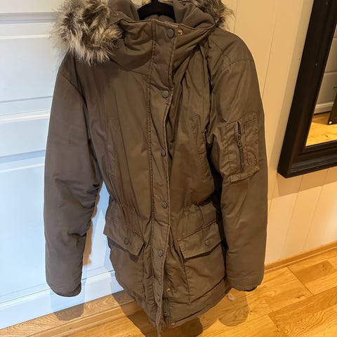 Selger en meget lite brukt parkas . Veldig varm og god kvalitet . Merket Jean Paul str S . Beige farge . Omtrent ikke brukt.