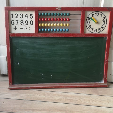 Sjarmerende og retro tavle fra 70-tallet. Går ikke an å skrive med kritt på den, men vi har brukt den som dekorasjon (bilde) på barnerommet.
