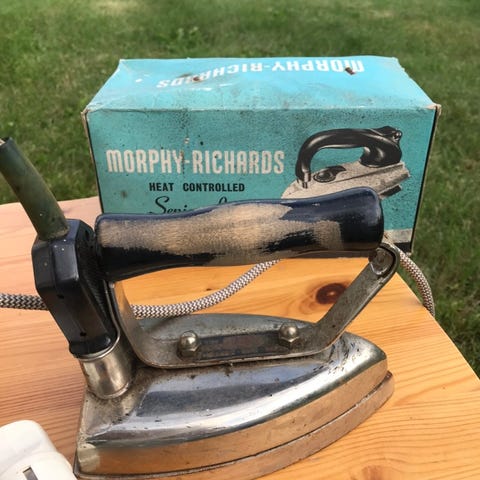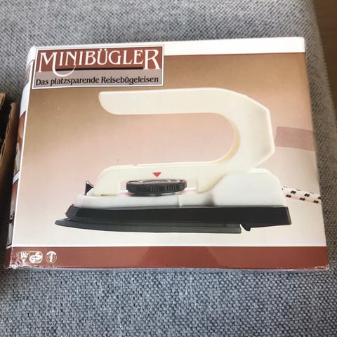 Selger et vintage reisestrykejern, sannsynlig fra 50 tallet.