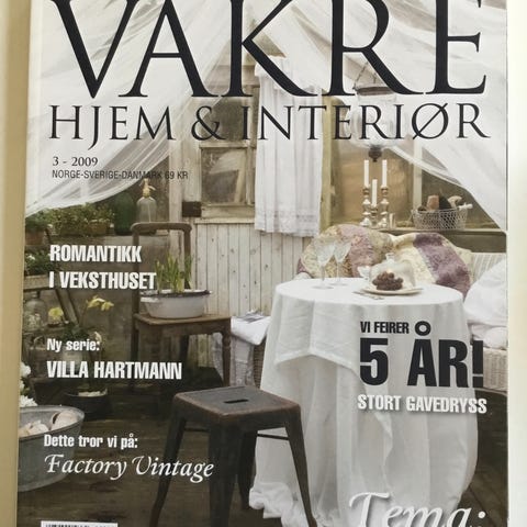 Vakre hjem & interiør blader. Som ny. Prisen er pr stk. Jeg selger flere ulike Vakre hjem og interiør blader og andre blader og kan ta flere bilder ved interesse. Se også mine andre annonser ved å trykke på profilnavn og annonser. Prisen er pr stk. La deg underholde og bli inspirert av interiørblader. Fint lesestoff når man vil slappe av eller før man skal sove. Ingen blader jeg selger er lest på do. Hentes på Bogstad (lett å parkere, jeg kan og møte deg på himstadplassen eller Bogstad camping bussholdeplass), eller sendes og pakkes godt. Jeg sender med brevpost, inntil 5 kg med sporing og forsikring til 69 kr med postnord, til 73/82 kr med posten helt hjem/helt hjem eller med fiks ferdig. Ønsker du å kjøpe mer, kan det sendes på samme porto hvis det er innenfor målene for porto. Se også mine andre annonser ved å trykke på profilnavn og annonser. Jeg selger flere interiørblader, andre blader, bøker og annet.