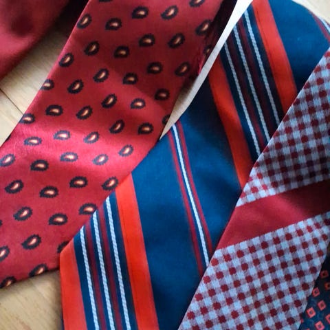Slips med burgunder bunnfarge - slipset til høyre med ender er solgt