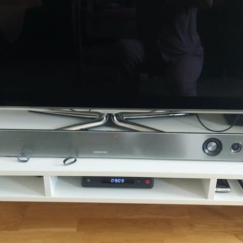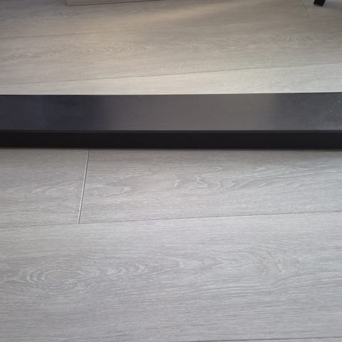 Festes bak tv’n og lar lydplanken henge rett under Tv’n. Du slipper å feste i veggen eller ha tv-benk under.