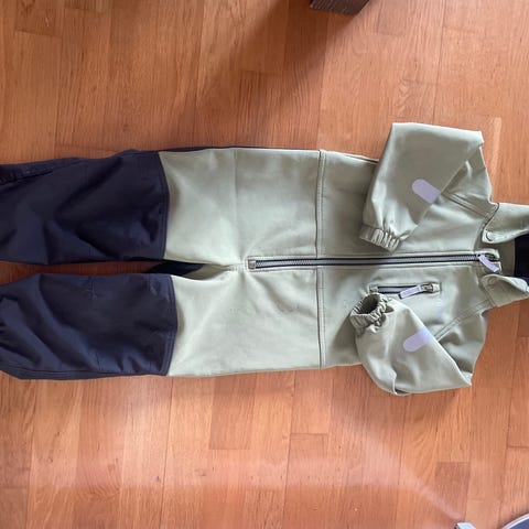 Reflex parkdress, softshell, 98 cm/ 3 år. Hetta kan reguleres. Mykt tynt fleecefór. Helt nye gummistrikker satt på nå før salg, sender med (i lomme) to strikker som er litt brukt. Usikker om det er modellen Hitra.