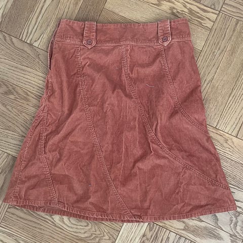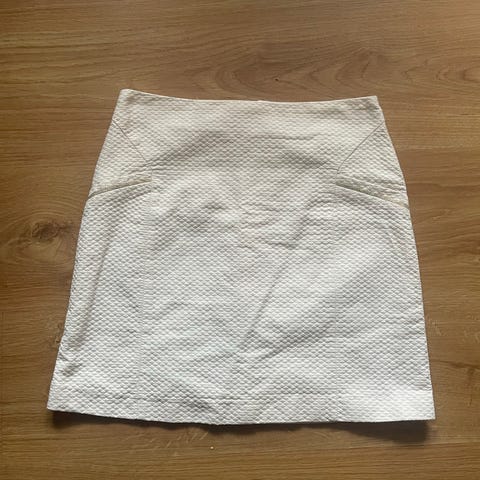 Enkelt og anvendelig skjørt i 98% bomull fra H&M ca 2005 (vintage) med dekorative lommer i front og glidelåslukking bak.