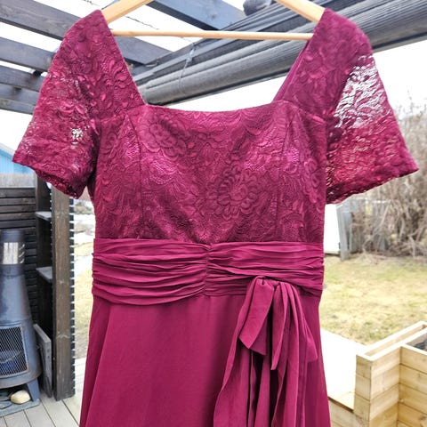 Fargen er burgunderrød (og mest lik på de mørkeste bildene), men på grunn av dagslyset og kameraet så kan den fremstå litt for rosa på noen av bildene ..
