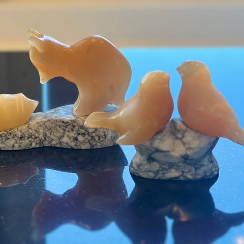 Et kunststykke laget i pulver av ulike edelsten, halvedelsten (smykkesten) som er påført en plate av marmor.
