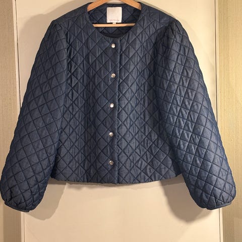 Selger denne nesten ubrukte kule jakken fra Ane Mone med nagler og stjerner flere steder. Det er snøring i livet som gjør at jakken kan justeres.