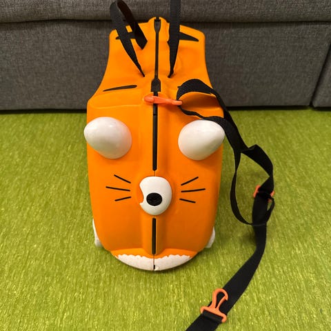 Blå Trunki-koffert for barn, brukt kun et par ganger og i veldig god stand. Kjempepraktisk til reiser – barna kan pakke sine egne ting, sitte på den og trille selv gjennom flyplassen. Den er lett, solid og har god plass til det viktigste. Perfekt for små eventyrere som liker å være med på pakkingen!