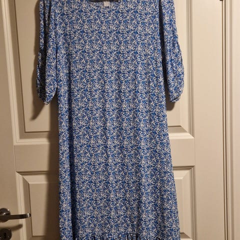 Fin og behagelig blå sommerkjole med hvitt mønster. Ubrukt.