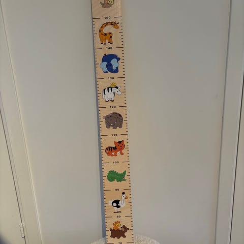 Nydelig høydemåler til barn. Pent brukt, men et lite merke ytterst på et blad. Må hentes.