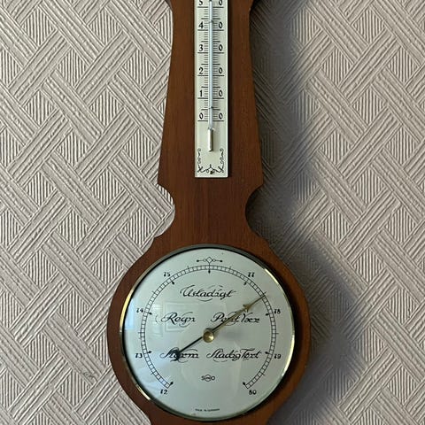 Meget pen stor værstasjon fra tyske Huger. Høyde ca 70 cm. Fungerer som den skal. Messing og glass på treplate av edlere tresort.