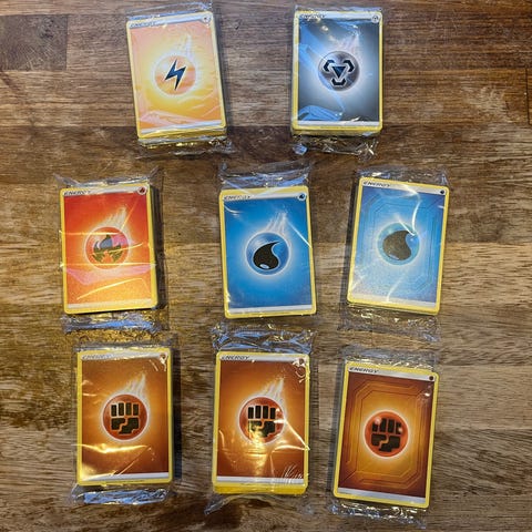 Pokemon kort tilbehør selges. 6 Energy stacks og en pakke med 151 sleeves. Kan selge alt samlet for 125 kr. Passer fint for de som vil ha noen kule 151 sleeves og mange kort billig.