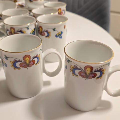 10 asjetter, 9 skåler til kopp og 9 kopper.