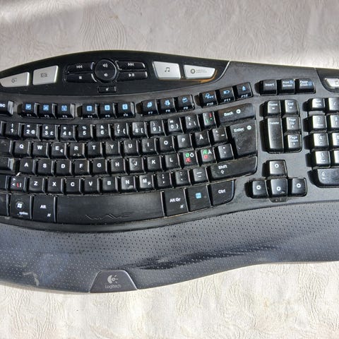 Tastatur med ergonomisk utforming, inkludert en buet form og integrert håndstøtte, som oppfordrer til en naturlig håndstilling og gjør at du unngår skader i håndledd og skuldre over tid.