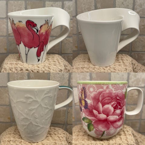 Villroy & Boch kaffekrus med fat, selges for 250 brukt ett par ganger på hytta, mest som skap pynt. Kjøper betaler porto eller kan hentes på Skedsmokorset eller Kirkenes.