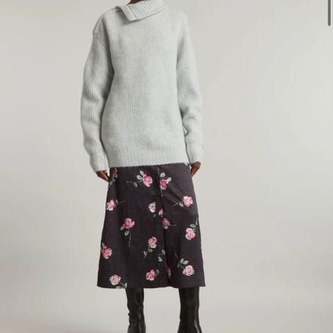 Flott strikket genser av 32% alpakka, 32% merino, 30% polyamid og 6% elastan. Pent brukt!
