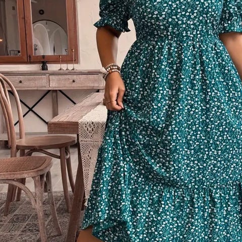 1 sommerlige mønstret m.litt folder, Hanne XL kr 300,,-