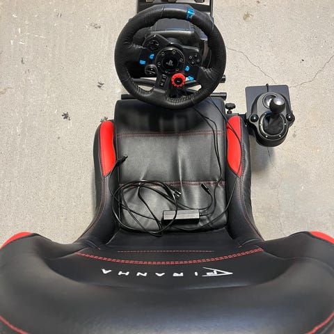 Pent brukt stol fra Playseat med ratt og pedal fra Logitech.