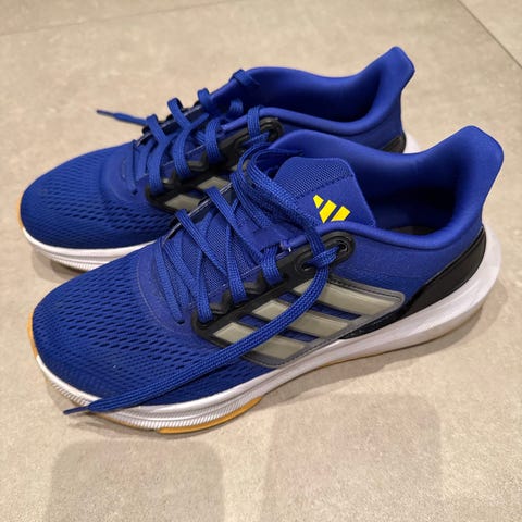 Selger et par Adidas joggesko i størrelse 40 ⅔ (EU). Fortsatt pene, men noe slitasje rundt snøringen på den ene skoen (se bilde). Ellers hel såle og god funksjon. God passform.