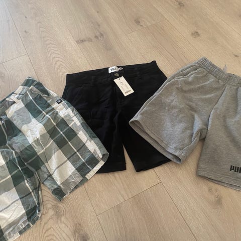 Pent brukt av 1 barn, kan ikke se noen flekker eller hull, litt slitt print på ene shortsen og de har kanskje mistet litt farge i vask. Ellers fine😊