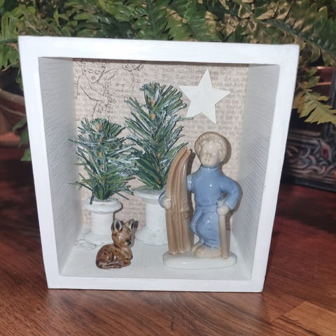 Har inngravert Julen 1941 på lokket og svidekor med tre vers av: Å leva det er å elska...... langs kanten.