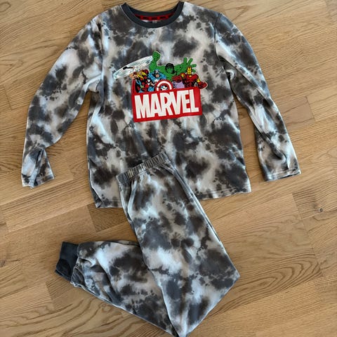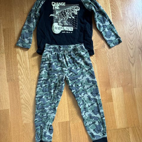 Fleecesett (bukse og genser) til barn med dinosaur-motiv.