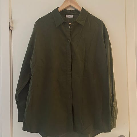 Mørk grønn, smal fløyel skjortebluse med knapper og 2 brystlommer. Hel og pen. Passer like godt til dame som menn, gjerne med teskjorte inni, åpen eller igjenknappet. Akkurat den fløyelen, som er in i tiden nå.