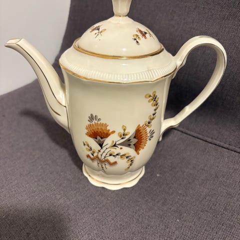 Nydelig tekanne fra Porsgrunn Porselen 1951. Et lite skår i tuten, ellers ingen andre skader eller slitasje.