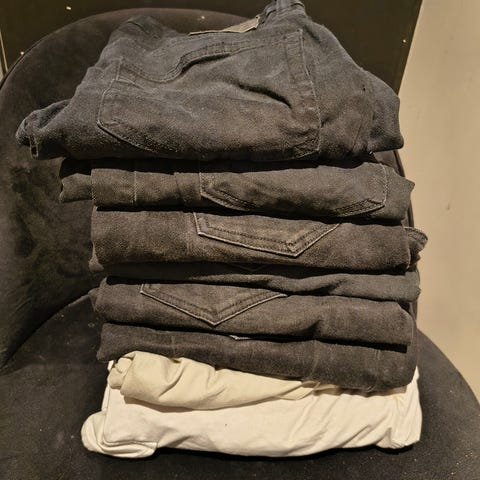 Første bilde inneholder 10 bukser, men de fleste er solgt nå.