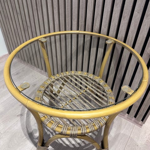 Selger et Bibbona utebord fra Jotex i fargen muldvarp (beige). Utgått fra sortiment.