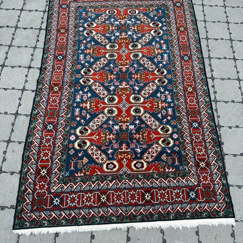Maskinlaget teppe i persiske still, ullblanding. Evaluerer til kun å ha bruksverdi.