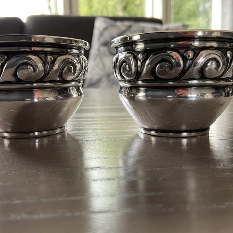 De er 10 cm høye og 7,5 cm i diameter. Selges for 25kr pr stk eller 40kr for begge to.