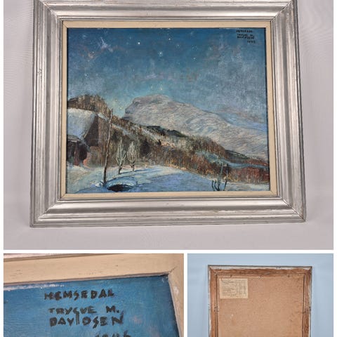 Bildet jeg selger har lysmål 66 x 47 og motivet skal være fra Dombås malt i 1926. Jeg synes dette er et av de beste bildene hans. Både komposisjonen, fargebruken og hvordan lyset faller bidrar til å skape et virkelig vakkert kunstverk. Bildet har fått ny ramme og er nylig renset slik de det fremstår i topp stand,.
