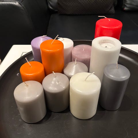 To stk lysholdere til kubbelys i glass med stativ i metall. Begge glassbeholderne kan tas av.