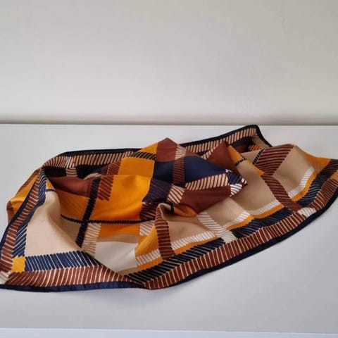 Rutet sjal, fin til vår og sommer. Mørkeblå & offwhite. Måler ca 75 x 190 cm.