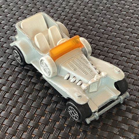 Dinky Toys Vintage Lekebil i rød metall med beige interiør. Skala 1:43. Modellen har detaljer som åpen topp, synlige motor- og eksosdetaljer, og fire hjul. Passer som samleobjekt eller dekorasjon.
