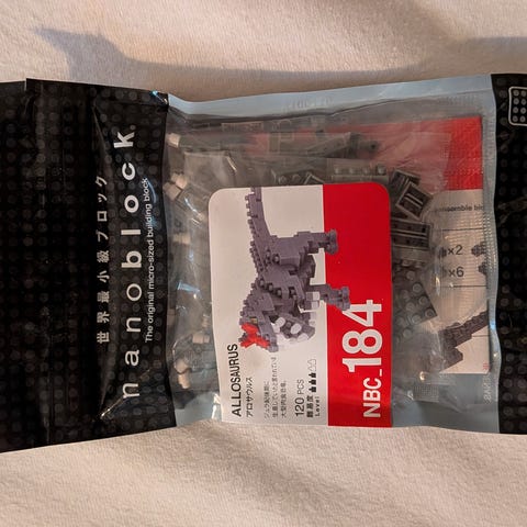 Ny og uåpnet Tyrannosaurus fra Nanoblock Tyrannosaurus. Settet består av 110 brikker. Anbefales fra 12 år og oppover. Settet har gått ut.