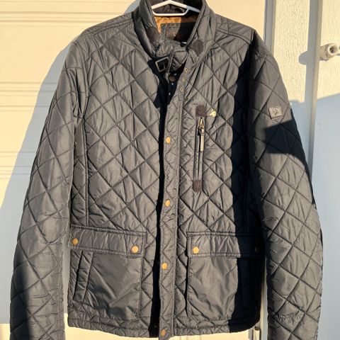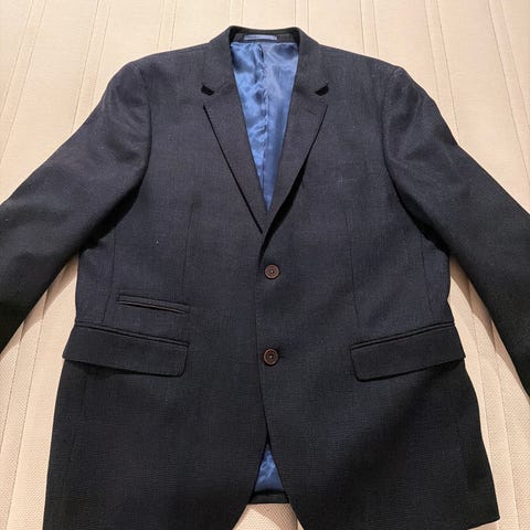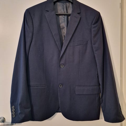Fin Jean Paul dressjakke. I god stand, noen hint til noen veldig små flekker her og der, men ingenting som er noe synlig med mindre du ser helt nærme. Kan sikkert vaskes bort. Mørkeblå/svart i fargen.