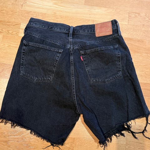 Jeansshorts fra Levi’s 412 selges rimelig. Svært pent og lite brukt. Lommer foran og bak. Lukkes med knapp og glidelås. W: 28. Muligens unisex, men tror det er herremodell.